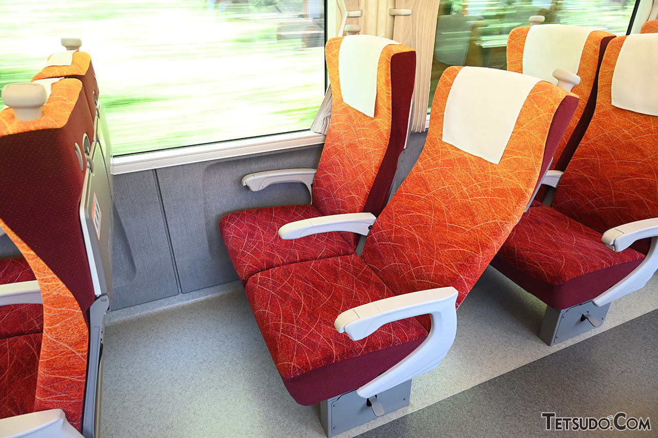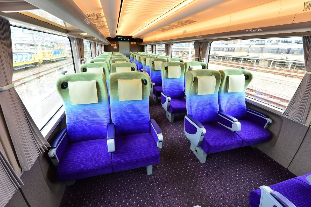 まず普通車について見ていきます。普通車は自由席と指定席の両方が設定されており、自由席は予約なしで当日購入できるのが大きな特徴です。座席は2列+2列の配置で、背もたれは比較的高めに設計されています。HC85系車両では、座席のクッション性が従来車両より改善されたと公式サイトで紹介されており、長時間でも疲れにくい設計とされています。また、一部座席にはコンセントが設置されており、スマートフォンの充電ができる点も評価されています。ただし、自由席の場合は座席の位置を選びにくく、混雑時は立ち乗りになる可能性があるのがデメリットです。